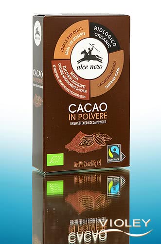 Alce Nero Organic Unsweetened Cocoa Powder. Unsweetened¹ cocoa powder obtained through careful processing of organically grown, fair trade cocoa beans. The intensely flavoured cocoa powder is ideal for baking cakes and desserts or for preparing hot chocolate and drinks. With its full, authentic cocoa flavour, it brings pure chocolate notes to sweet and savoury recipes.