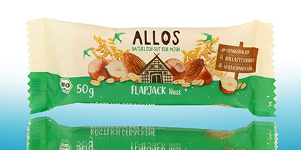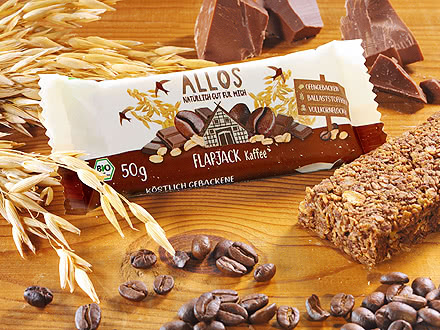 Allos forvandler klassiske flapjacks til økologiske havrebarer af høj kvalitet. De sprødbagte snacks lavet af naturlige ingredienser fås i forskellige varianter med frugt, nødder, kaffe, chokolade eller kakao. Mens Organic Oat Flapjack Nut forkæler din gane med knasende hasselnøddekerner og ristede mandler, er Organic Oat Flapjack White Choc Cranberry afhængig af den søde og frugtagtige kombination af hvide chokoladestykker og fyldige tranebær. Den let syrlige Organic Oat Flapjack Choco passer godt til kaffe og te med sin fine mørke chokolade. Takket være samspillet mellem dadelsaft, kaffepulver og et strejf af mælkechokolade har Organic Oat Flapjack Coffee en vidunderlig sødlig-syrlig aroma. Abrikoser, æbler og ribs sørger for den frugtagtige sødme i Allos Organic Oat Flapjack Country Fruits. I modsætning til normale müslibarer er Allos Organic Oat Flapjacks bagt i ovnen og indeholder fiberrige havregryn og værdifulde ingredienser som frugt, nødder og ren kakao.