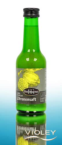 BioGourmet Økologisk citronsaft. BioGourmets citronsaft fra solmodne citroner er friskpresset og derefter skånsomt tappet på flaske. Ideel til at forfine salte og søde retter, i guacamole eller i cocktails. Frisk, alsidig og naturligt syrlig.