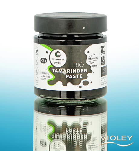 Cosmoveda Økologisk Tamarind Paste. Tamarind kaldes også indisk dadel eller sur dadel. Den er en vigtig del af det asiatiske og afrikanske køkken. Tamarind er et godt alternativ til eddike eller citronsaft og giver indiske retter deres typiske sød-syrlige smag.