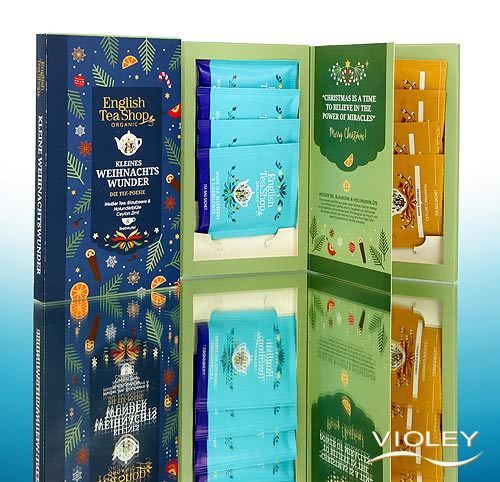 English Tea Shop Økologisk te Poesi Lille julemirakel. Et kærligt designet tesæt, der bringer vintersmag og en festlig atmosfære til adventstiden. To vinterlige økologiske teer (8 infusionsposer), festligt pakket og klar til at give som gave. En lille gave, der bringer varme, glæde og julemagi.