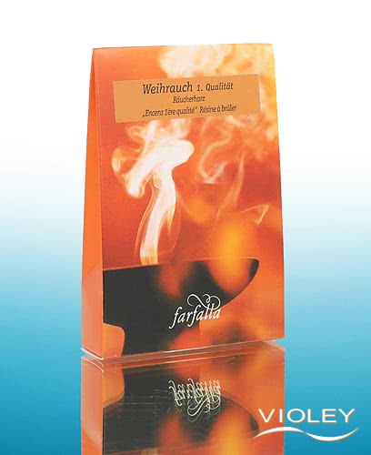 Farfalla Røgelsesharpiks røgelse første kvalitet er en næsten gennemsigtig, kostbar røgelse. Det siges, at den renser atmosfæren for dårlige vibrationer og støtter intellektuelt arbejde. Den anses for at være beskyttende mod dårlig indflydelse.