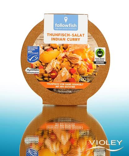 followfood Tunsalat indisk karry. Tunen fanges med stang og snøre. Denne metode er også kendt som pole-and-line-fiskeri. Tun og kikærter udgør grundlaget for denne eksotiske tunsalat. Den ledsages af peberfrugt, ananas og brune ris samt en lækker sauce med ananasjuice.