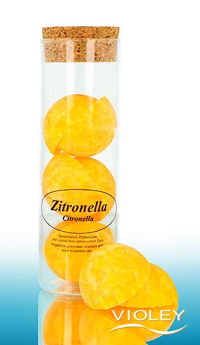 Kerzenfarm Hahn Duftkugle Citronella i en glascylinder. For en behagelig rumatmosfære med en frisk citruslignende duft. Læg blot en (halv) duftkugle i din duftvarmer i stedet for vand og duftolie, og tænd fyrfadslyset. Duftkuglen smelter i løbet af få minutter og fylder rummet med en subtil duft.