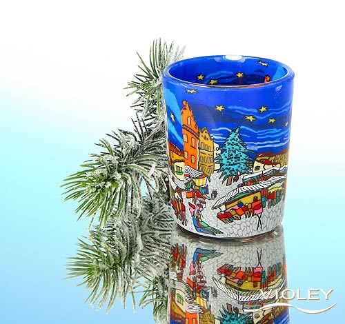 Fyrfadsglas Ø 58 mm med motiv af et julemarked