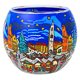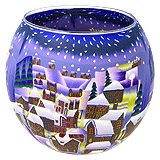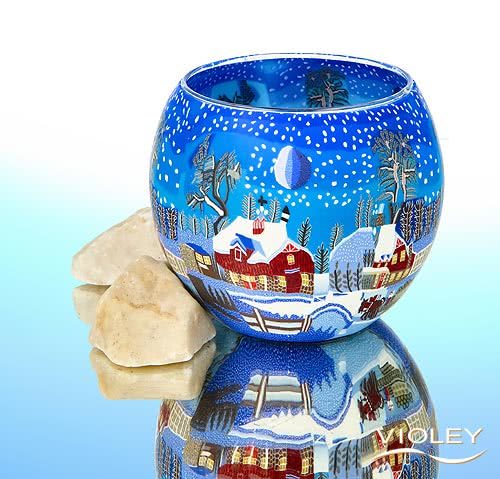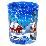 Lysende glas Ø 110 mm med motiv af en vinternat på landet