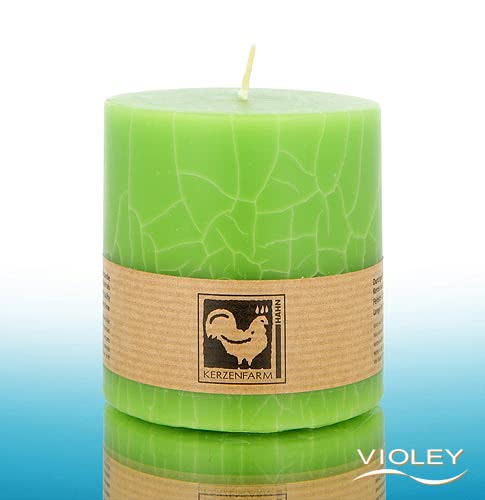 Kerzenfarm Hahn Pillar Candle Green 85 x 80 mm Cracklee 85 x 80 mm. Det smukke grønne bloklys med den marmorlignende overflade giver et behageligt lys og en stemningsfuld atmosfære. Kvalitetsparaffinen brænder uden rester. Kerzenfarm Hahn bruger kun udvalgte væger af 100 % bomuld.
