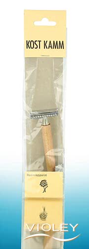 KostKamm Safety Razor cylindrisk med håndtag af vandfast lakeret bøgetræ. Klassisk sikkerhedsbarberkniv, hvori der kan indsættes et barberblad. Velegnet til konturer og længere skæghår. Det cylindriske håndtag ligger godt i hånden og understøtter en jævn føring. Velegnet til standardbarberblade, som kan skiftes hurtigt og nemt.