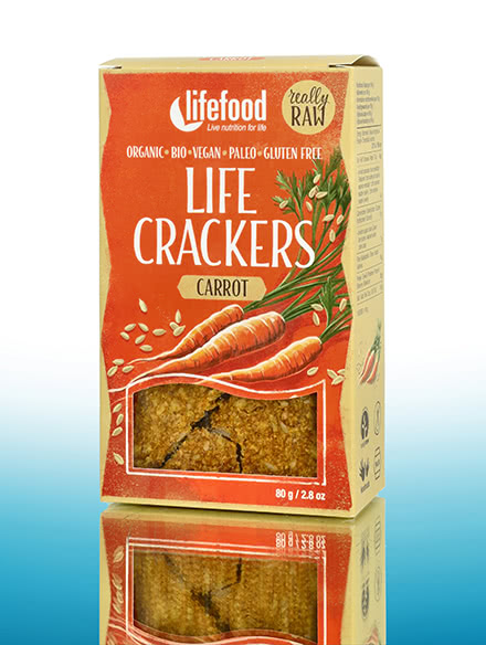 Det perfekte alternativ til bageriprodukter er de glutenfri, økologiske Crackers fra Lifefood, som er langsomt dehydreret ved lave temperaturer. De sprødt krydrede økologiske snacks fås i en lang række smagsvarianter. De milde Life Crackers Organic Chia Hemp fra Lifefood er lavet med fine mandler, gyldne hørfrø, nøddeagtig hamp og chiafrø. De smager godt med lækre spreads eller kan bare spises rent. De, der foretrækker mættende snacks, bør prøve Life Crackers Organic Carrot, der er lavet af gulerødder, hørfrø og solsikkekerner, eller de lækre økologiske Life Crackers Italian med typiske middelhavskrydderier. Med Life Crackers fra Lifefood kan du nyde sprødt brød som basis for sandwiches eller kanapéer. Lad dig overraske over, hvor lækker raw food kan være.