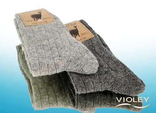 MUM Sox Alpaka Wool Socks lysegrå/mørkegrå. Alpakaer er sydamerikanske små kameler, som blev tæmmet i Andesbjergene for mange århundreder siden. Deres uld er blød, skinnende, slidstærk og meget varmere end fåreuld. Med 35 % alpakkauld er disse sokker et ægte blikfang, og de er også dejligt varme.