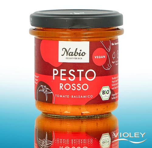 Nabio Økologisk Pesto Rosso. Pesto Rosso er en tomatbaseret klassiker blandt pestoer og imponerer med sin intense smag. De mange tomater giver den en vidunderlig frugtagtig og aromatisk smag, som afrundes af balsamicoeddikens subtile sødme og milde syre. Hvidløg og basilikum sætter prikken over i'et. Ikke kun til pasta, men også som dip til grøntsager eller som lækkert pålæg.