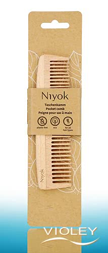 Niyok Lommekam. Denne kompakte kam af bøgetræ er et praktisk og holdbart redskab til hårpleje. Dens praktiske størrelse gør den til en god rejseledsager. Den passer nemt i tasken eller bagagen, så du kan holde dit hår velplejet når som helst og hvor som helst. Lommekammen har fint forarbejdede, tæt placerede tænder, som er velegnede til både kort og langt hår. De antistatiske egenskaber i trækammen reducerer krus og sikrer glat, skinnende hår. På trods af sin kompakte størrelse er kammen behagelig at holde på og giver en præcis håndtering, som gør det nemt at rede håret ud og style det.