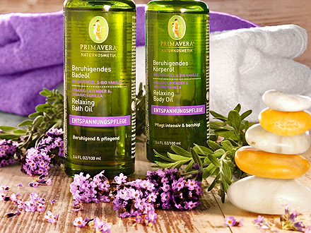 Til tør og følsom hud har Primavera udviklet hudplejeserien Lavender Vanilla. De værdifulde ingredienser beroliger huden og forkæler den med en ekstra dosis fugt. Med Body Wash Organic Lavender & Organic Vanilla kan du nyde en kort pause under bruseren. Body Cream Organic Lavender & Organic Vanilla støtter huden med en blanding af nærende økologisk solsikkeolie, økologisk kukuinøddeolie og økologisk cupuacusmør. The Body Oil Organic Lavender & Organic Vanilla tilfører ekstra fugt til tør og følsom hud med koldpresset økologisk kæmpenatlysolie af høj kvalitet og økologisk aloe vera-olie. Hvad kunne være bedre end et afslappende bad? Til formuleringen af Bath Oil Organic Lavender & Organic Vanilla er Primavera afhængig af naturlige fugtgivende plejestoffer. Selv en lille mængde olie udstråler en beroligende duft, som gør det lettere at slappe af fra hverdagen.