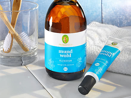 For at supplere den daglige tandbørstning har Primavera udviklet Mundwohl-serien. I tre plejeprodukter af høj kvalitet kombineres 100 % naturlig plantekraft med en holistisk følelse af friskhed. Mundwohl Oil Pulling Cure kombinerer værdifuld viden om aromaterapi med den traditionelle lære fra Ayurveda. Den velsmagende opskrift samler 100 % naturlig økologisk kokosolie, økologisk sesamolie og økologisk solsikkeolie. Efter tandbørstningen sikrer Mundwohl Mouthwash med æterisk spearmint- og citronolie en behagelig friskhed. Takket være det integrerede doseringsbæger kan den hældes direkte fra flasken og ind i munden. Primavera Mundwohl Lips Acute Gel er specielt udviklet til pleje af læber og mundvige. Med citronmelissevand, spearmint- og cistusolie samt lakridsrodsekstrakt virker den mod kløe i mundvigene og danner en beskyttende film på læberne. Med Mundwohl-serien kombinerer Primavera kraften fra gennemprøvede aromatiske planter og lægeplanter med holistisk viden om aromaterapi.