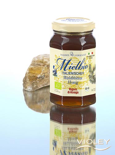 Rigoni di Asiago Skovhonning. Honningdug indsamlet om sommeren, denne mørke ravfarvede honning forbliver flydende over en lang periode. Den har en fyldig aromatisk smag og bouquet, der minder os om Asiago-sletten.