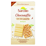 Sarchio Økologiske risvafler med hvid chokolade. Disse riskager kombinerer sprødheden fra puffede ris med den delikate cremethed fra hvid chokolade. Tre vafler er individuelt pakket i to praktiske enkeltportioner. Lige til at tage med på farten, på kontoret, eller når du vil forkæle dig selv med et sødt øjeblik.