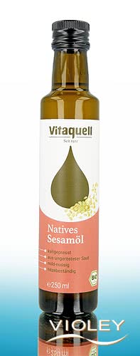 Vitaquell Økologisk sesamolie jomfru. Olien smager mildt nøddeagtigt og er skånsomt koldpresset af uristede, lyse sesamfrø. Sesamolie bruges fortrinsvis i det asiatiske og orientalske køkken. Den er varmebestandig og derfor velegnet til stegning og wokretter. Den kan også bruges til salater og desserter.