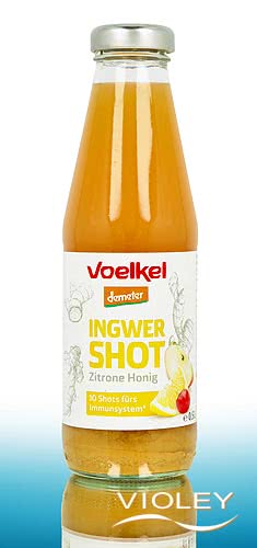 Voelkel Økologisk Shot Ingefær Citron Honning i den store 500 ml flaske. Voelkel Ginger Shot Lemon & Honey sparker til med naturligt C-vitamin fra acerolakirsebær og smag af ingefær, frugtagtig citron og fin honning. Til en god start på dagen eller en spændende afslutning på dagen!