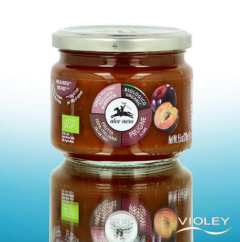 Alce Nero Bio Pflaumen Mus. Genießen Sie den den fruchtig-frischen Charakter italienischer Bio-Pflaumen. Die aromatisch-fruchtige Konfitüre mit einem Fruchtanteil von 105 g Früchten auf 100 g Konfitüre wird schonend verarbeitet und mit Zitronensaft ausgewogen verfeinert. Ohne Zusatz von Pektin. Köstlich als Brotaufstrich und perfekt für die Zubereitung von Desserts und Gebäck sowie als Füllung für Kuchen und Torten.