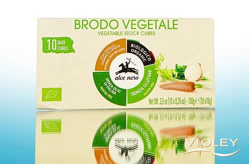 Alce Nero Gemüse-Brühwürfel. Mit ausgewählten Gemüsesorten wie Zwiebel, Sellerie, Karotte und Petersilie sorgt dieser Bio-Gemüsebrühwürfel für eine herrliche, natürliche Würze. Die Rezeptur kommt ohne Palmöl aus und ist glutenfrei. Ideal zum Verfeinern von Suppen, Saucen, Risotto oder Gemüsegerichten, praktisch portioniert für die einfache Dosierung im Alltag.