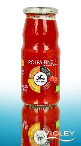 Alce Nero Tomaten Fein Gehackt. Italienische Tomaten auf dem Höhepunkt ihrer Reife geerntet und schonend verarbeitet zu einer feinfruchtigen Tomatenpolpa. So bewahren diese fein gehackten Tomaten das volle Aroma des Sommers - tiefrot und fruchtig.