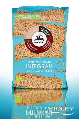 Alce Nero Vollkorn Hartweizen Zwieback. Knusprige Vollkorn-Zwieback-Scheiben aus italienischem Bio-Weizen - zweimal gebacken für extra Knusprigkeit und lange Haltbarkeit. Die dünnen, goldbraunen Scheiben eignen sich perfekt zum Frühstück mit Marmelade, Honig oder Streichkäse oder als leichter Snack zwischendurch. Praktisch portioniert in Einzelpackungen à 3 Scheiben, lassen sie sich überallhin mitnehmen und bleiben dabei frisch und knackig.