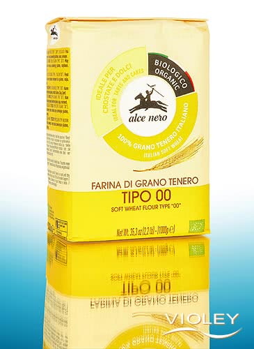 Alce Nero Weichweizen Mehl Tipo 00. Der italienische Typ "00" entspricht in etwa der Type 405 und steht für das feinste Weißmehl. Das Mehl wird ausschließlich aus dem Kern des Weizenkorns gewonnen und eignet sich hervorragend für Kuchen, Kekse und Torten, die eine luftig-zarte Konsistenz brauchen. Die feine Struktur macht es zur idealen Basis für zartes Gebäck und feine Backwaren, die im Mund zergehen sollen.