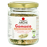 Arche Gomasio im 100 g-Glas. Gomasio ist ein traditionelles, asiatisches Würzmittel aus Sesamsaat und etwas Meersalz. Die feinen Röstnoten des Sesams machen es zu einer nussigen Alternative zu Salz. Tipp: Gomasio erst bei Tisch oder am Ende der Kochzeit zugeben, nicht mitkochen.