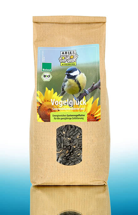 Aries Vogelglück Klassiker ist eine reine Getreide-Körner-Mischung aus heimischen Bio-Zutaten. Energiereiche Sonnenblumenkerne und Nusskerne sowie schmackhafter Weizen und Gerste bringen Gartenvögel gut über den Winter. Das Gartenvogelfutter mit Körnern und Nüssen aus Bio-Anbau ist reich an natürlichen Fettquellen, frei von Aromen und Farbstoffen sowie synthetischen Zusatzstoffen. Die Inhaltsstoffe unterstützen den Energiehaushalt der Vögel. Haselnüsse enthalten viele ungesättigte Fettsäuren und liefern damit wertvolle Kalorien in der kalten Jahreszeit. Aries Vogelglück gibt es als klassische Getreide-Körner-Mischung und als reine Variante mit Sonnenblumenkernen. Sonnenblumenkerne sind ein guter Öllieferant für Vögel – immerhin bestehen die Kerne zu über 90% aus ungesättigten Fettsäuren. Die Aries Vogelglück Bird Box ist ein wiederverwendbares Futterhaus für Gartenvögel. Am besten befestigen Sie die Bird Box unter einem Dach oder unter einem Baum. Auf jeden Fall sollten Sie eine Stelle wählen, die Sie gut beobachten können und bei der es Katzen und andere Fressfeinde schwer haben, sich unbemerkt heranzuschleichen.