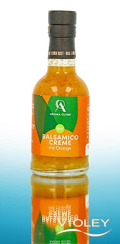 Aroma Olymp Balsamico Creme Orange. Unter der Sonne Kretas gewachsen und mit Schale verarbeitet, bringen die Orangen nicht nur fruchtiges Aroma, sondern auch die herben, aromatischen Öle der Schale mit in diese samtige Creme. Zusammen mit kretischem Balsamessig und konzentriertem Traubenmost ergibt das eine herrlich frisch-würzige Kombination. Ob über Salaten, zu Feta, zu Fisch oder als fruchtiger Twist im Joghurt - Ihrer Kreativität sind keine Grenzen gesetzt.