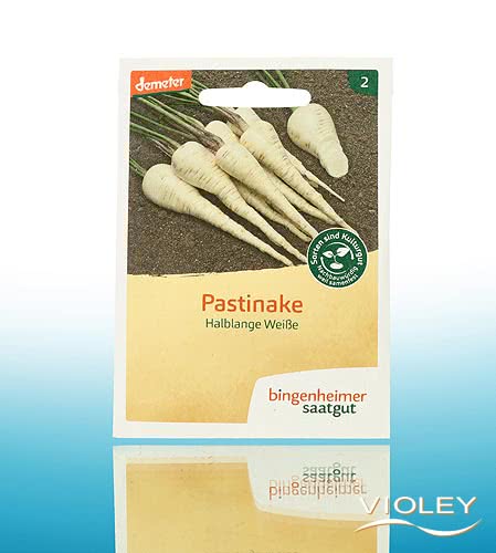 Bingenheimer Saatgut Pastinake Halblange Weiße. Aromatisch-süßes, lagerfähiges Wurzelgemüse. Pastinaken benötigen tiefgründige, lockere Böden, um ihre langen Wurzeln ausbilden zu können. Die Samen brauchen bis zu 3 Wochen für die Keimung. Eine gute Bodenfeuchte ist in dieser Phase sehr wichtig. Ist diese nicht gegeben, bitte kontinuierlich und vorsichtig bewässern. Pflanzen nach dem Auflaufen auf 5-10 cm ausdünnen.