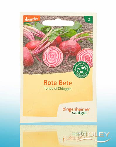 Bingenheimer Saatgut Rote Bete Tondo di Chioggia. Eine italienische Spezialität mit langer Tradition. Kann auch in unseren Gärten problemlos wachsen. Sie ist eine raschwüchsige, ertragreiche Sorte, die sich gut lagern lässt. Mit ihrer leuchtend hellroten Farbe, innen rot-weiß geringelt, zaubert sie Farbe auf den Teller. Im Geschmack zart und unaufdringlich, süßer und weniger erdig als herkömmliche Rote Bete kann man sie roh oder gekocht genießen.