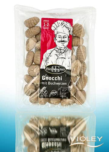 BioGourmet Gnocchi mit Buchweizen. Ihr uriges Aroma und die erdige Farbe erhalten die kleinen Kartoffelklößchen durch die Zugabe von feinem Buchweizenmehl. Gnocchi sind ein fester Bestandteil der italienischen Küchenkultur. Egal ob als Beilage zu Fleisch- und Fischgerichten, "al forno" mit Käse überbacken oder als Hauptgericht mit einer feinen Tomatensauce und frischen mediterranen Kräutern - die veganen Gnocchi sind Alleskönner und schmecken in jeder Jahreszeit. Zudem sind sie mit einer Kochzeit von 1-2 Minuten schnell zubereitet und eignen sch damit wunderbar als schnelle Mahlzeit.