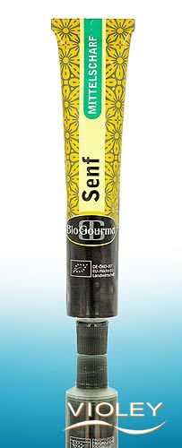 BioGourmet Senf Mittelscharf. Der mittelscharfe Senf in der Tube ist ein beliebter Begleiter zu Wurst und Käse und vielseitige Würze in Dressings, Saucen und Dips. Sein mildes Aroma und die ausgewogene Schärfe verdankt er seiner feinen Rezeptur und der gekonnten Verarbeitung von milder gelber und scharfer brauner Bio-Senfsaat.