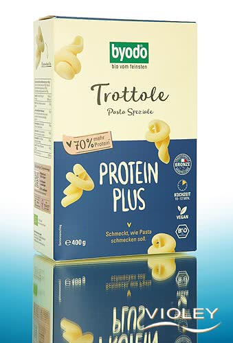 Byodo Trotolle Pasta Speziale Protein Plus. Diese Trotolle werden aus Hartweizengrieß, proteinreichem Weizeneiweiß und Kürbiskernmehl hergestellt. Das Ergebnis: ein hoher Proteingehalt von 20%! Für alle, die beim Pasta-Genuss mehr Proteine zu sich nehmen möchten und dabei nicht auf den klassischen Pasta-Geschmack verzichten wollen.