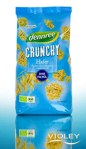 dennree Crunchy Hafer. Das geröstete Hafermüsli wird aus Hafervollkornflocken schonend hergestellt und mit Reissirup verfeinert. Schmeckt mit frischer Milch, Joghurt oder als knusprige Zutat für's Müsli. Es bietet aber auch pur leckeren Knabberspaß für Groß und Klein. Genießen Sie den knusprig-kernigen Hafer-Geschmack.