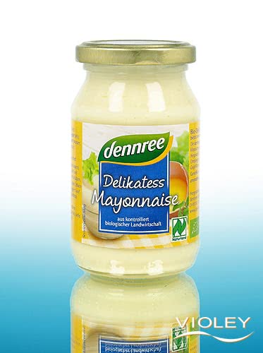 dennree Delikatess Mayonnaise. Die Delikatess Mayonnaise von dennree wird mit Sonnenblumenöl und Ei hergestellt. Für Saucen und Dressings, Sandwiches sowie zu Gegrilltem und zu Pommes Frites ein Genuss. Genießen Sie den cremig-aromatischen Geschmack!