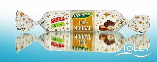 dennree Edelnougat. Genießen Sie einen weihnachtliches Nougatbrot mit einer zartschmelzenden Nougatfüllung umhüllt von schmackhafter Zartbitter Schokolade.