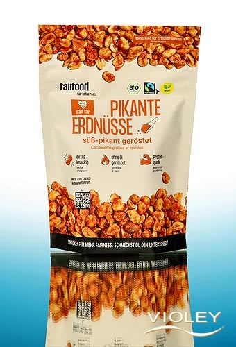 Fairfood Pikante Erdnüsse, süß-pikant geröstet. Die Kombination aus Kokosblütenzucker, Zwiebel und Paprika gibt diesen gerösteten Erdnüssen ihr charakteristisches Aroma. Die Erdnüsse werden ohne Öl geröstet. Sie sind wunderbar knackig und ein toller Snack für Partys, den Filmabend oder einfach als Knabberei für zwischendurch.