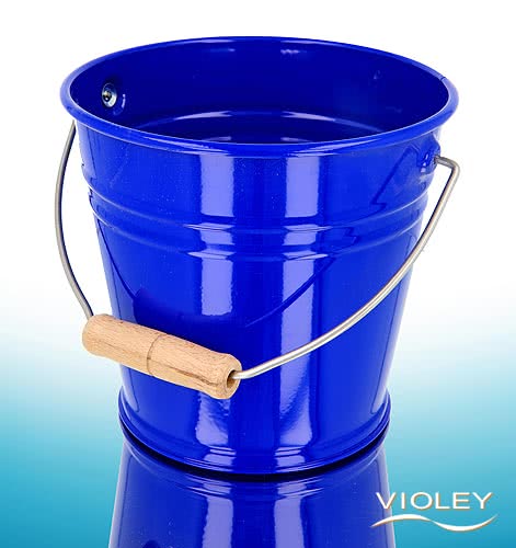 Glückskäfer Metalleimer mit Holzgriff, blau. Der schöne blaue Metalleimer sollte in keinem Sandkasten fehlen. Er ist auch ein toller Helfer beim Sandburgen bauen am Strand. Er ist ca. 15 cm hoch.