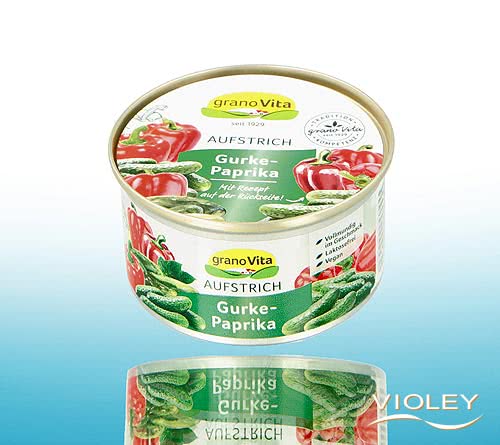 GranoVita Sandwich Pastete Gurke Paprika. Rote Paprika, feine Gewürzgurken, Zwiebeln und mediterrane Kräuter machen aus der Pastete Gurke-Paprika einen würzig-leckeren Brotaufstrich.