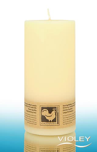 Kerzenfarm Hahn Stumpenkerze Creme 135 x 65 mm. Die schöne cremefarbene Stumpenkerze sorgt für angenehmes Licht und eine stimmungsvolle Atmosphäre. Die hochwertigen Paraffinwachse verbrennen rückstandsfrei. Kerzenfarm Hahn verwendet nur ausgesuchte Dochte aus 100% Baumwolle.