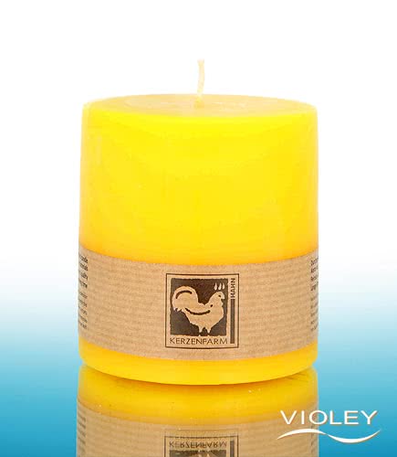 Kerzenfarm Hahn Stumpenkerze Gelb 85 x 80 mm. Die schöne gelbe Stumpenkerze sorgt für angenehmes Licht und eine stimmungsvolle Atmosphäre. Die hochwertigen Paraffinwachse verbrennen rückstandsfrei. Kerzenfarm Hahn verwendet nur ausgesuchte Dochte aus 100% Baumwolle.