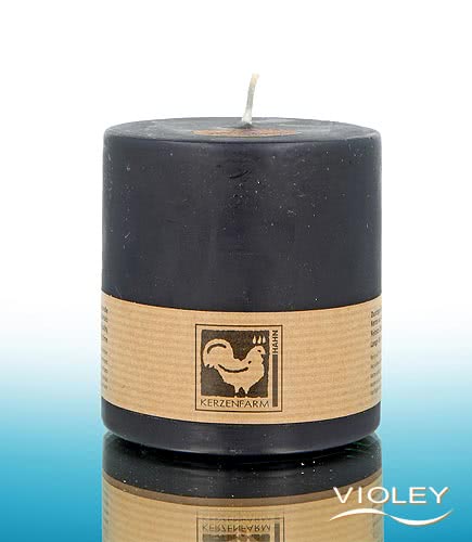 Kerzenfarm Hahn Stumpenkerze Schwarz 85 x 80 mm. Die beeindruckend schwarze Stumpenkerze sorgt für angenehmes Licht und eine stimmungsvolle Atmosphäre. Die hochwertigen Paraffinwachse verbrennen rückstandsfrei. Kerzenfarm Hahn verwendet nur ausgesuchte Dochte aus 100% Baumwolle.