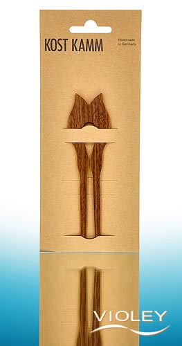 KostKamm Doppelspieß, 2-zinkig, tulpenförmig, Nussbaum, 14 cm. Setzen Sie bei Ihrem Styling auf natürliche Eleganz. Dieser tulpenförmige Doppelspieß aus Nussbaum-Holz mit zwei fein gearbeiteten Zinken bietet zuverlässigen Halt und eine harmonische Formgebung. Ob für Dutt, Knoten oder halb offene Frisuren - der Spieß gleitet mühelos durchs Haar und verleiht Ihrem Look eine stilvolle Note.