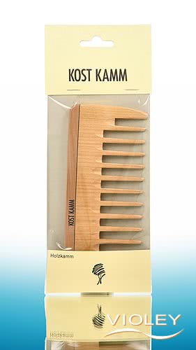 KostKamm Lockenkamm Holz extrem-grob, 16 cm. Dieser große Lockenkamm ist mit seinen extrem groben Zacken gut für voluminöses und lockiges Haar geeignet. Er wird aus heimischen Harthölzern gefertigt. Mit besonderer Sorgfalt werden die Spitzen der Kammzinken geschliffen und gerundet, sodass Sie mit dem Holzkamm beim Kämmen die Kopfhaut massieren können.