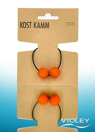 KostKamm Zopfgummi, 2 Kugeln 20 mm, orange. Setzen Sie auf Stil und Komfort. Dieser Zopfgummi mit zwei dekorativen Kugeln hält Ihren Pferdeschwanz oder Zopf sicher in Form - ganz ohne Ziepen. Die glatten, sorgfältig verarbeiteten Kugeln aus orange durchgefärbtem Schichtholz verleihen Ihrem Look einen charmanten Akzent und machen das Stylen einfach und mühelos.