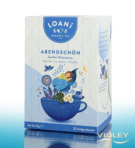 Loani Organic Tea Abendschön. Sanfter Bio-Kräutertee mit Kamille, Lavendel und Hopfen. Wie eine aufgeschüttelte Bettdecke umhüllen Baldrian und Lavendel und beruhigen wie eine Gutenachtgeschichte. Mit Loani genießen Sie hochwertige Bio-Zutaten in außergewöhnlichen Kombinationen für Körper und Geist.