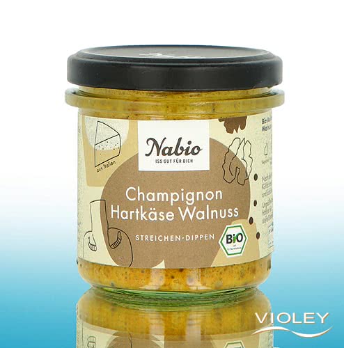 Nabio Champignon Hartkäse Walnuss Aufstrich. Sein intensives Aroma verdankt dieser würzige Aufstrich dem Trio aus Champignons, Walnussstücken und Hartkäse. Mit Kräutern und ausgesuchten Gewürzen wird der Geschmack harmonisch abgerundet. Ein Hochgenuss auf geröstetem Weißbrot oder zum Dippen von Gemüsesticks.