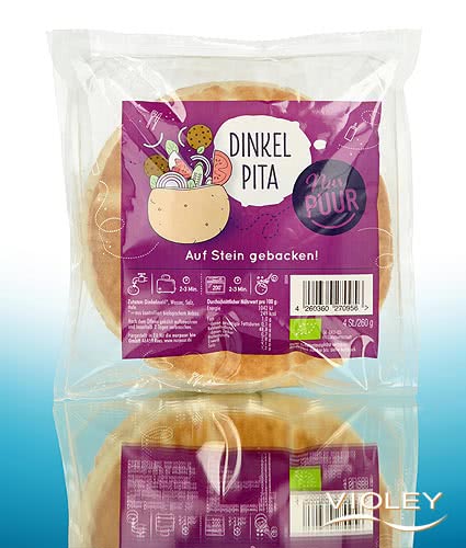 Nur Puur Dinkel Pita. Im Mittelmeerraum und im Nahen Osten gehören die kleinen, runden Fladenbrote vielerorts zur traditionellen Küche. Typisch für Pita ist die Tasche, die nach Herzenslust mit Gemüse, Fleisch, Fisch oder Käse gefüllt werden kann. Diese leckeren Pitas werden nicht mit Weizen-, sondern mit Dinkelmehl gebacken.